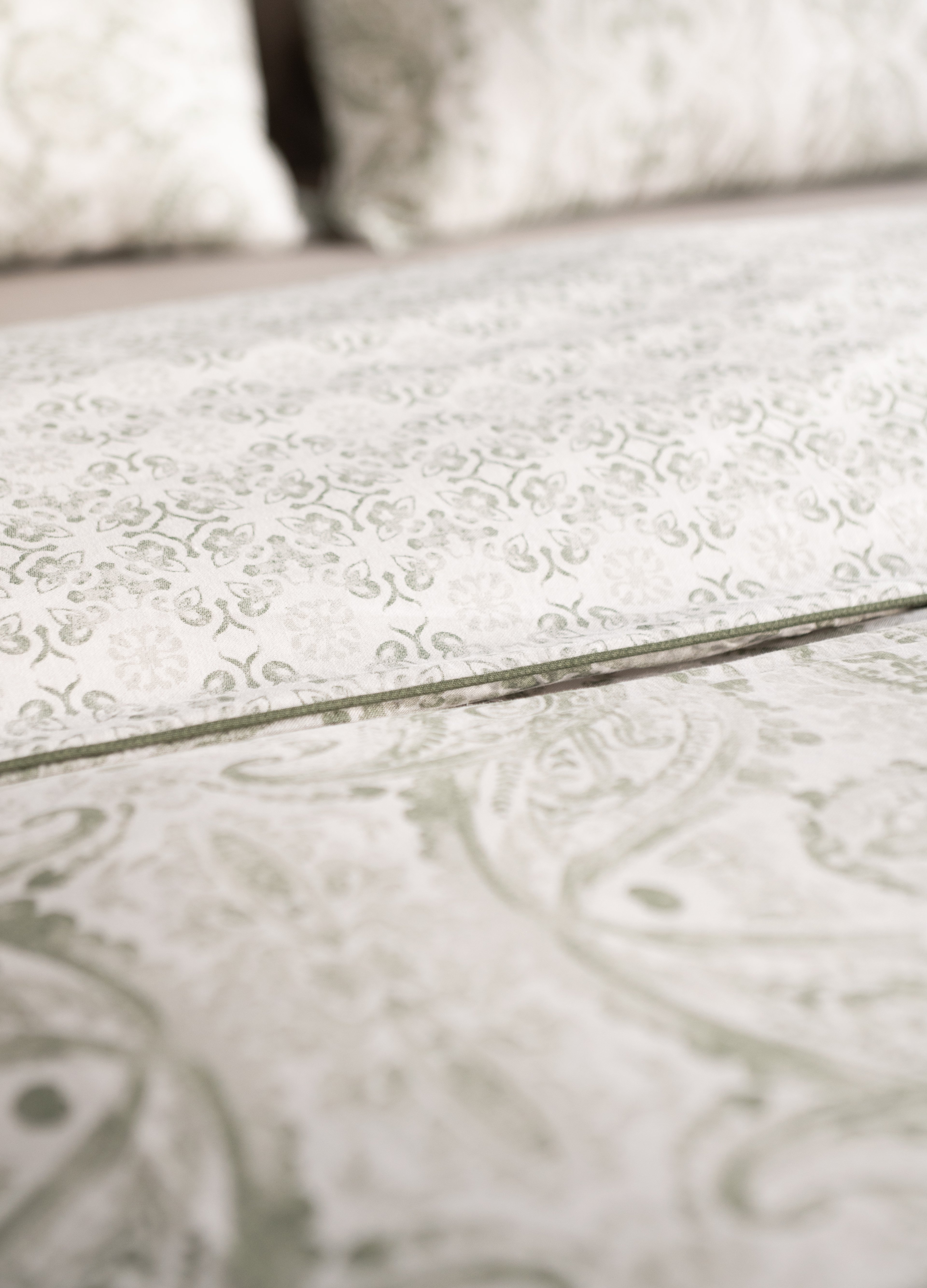 Fall into this easy-to-wash, breathable 100% cotton duvet set that offers the perfect balance of softness and durability, night after night. Switch between 2 different looks with a fully reversible duvet cover: one side is printed, one side is a plain matching colour. We've paid attention to the details on this locally made, easy-to-wash set with a neatly piped edge and button closure on the duvet cover set.