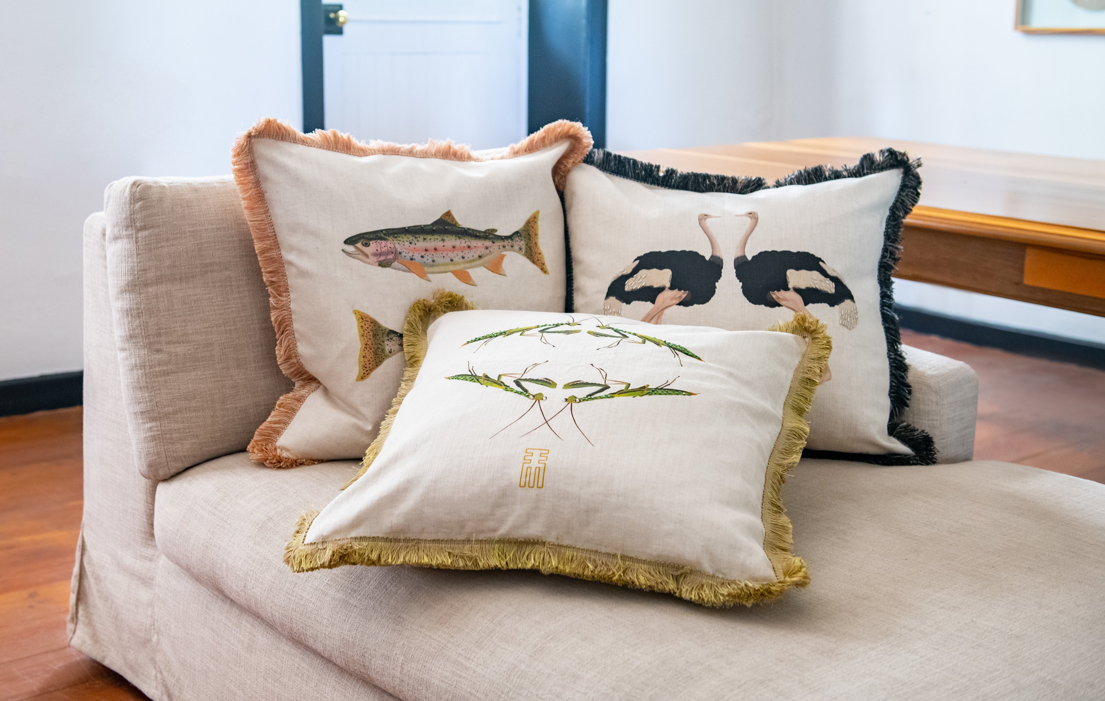 A range of handprinted table linen and scatter cushions producing from only the best quality fabrics that are selected for their longevity of use.