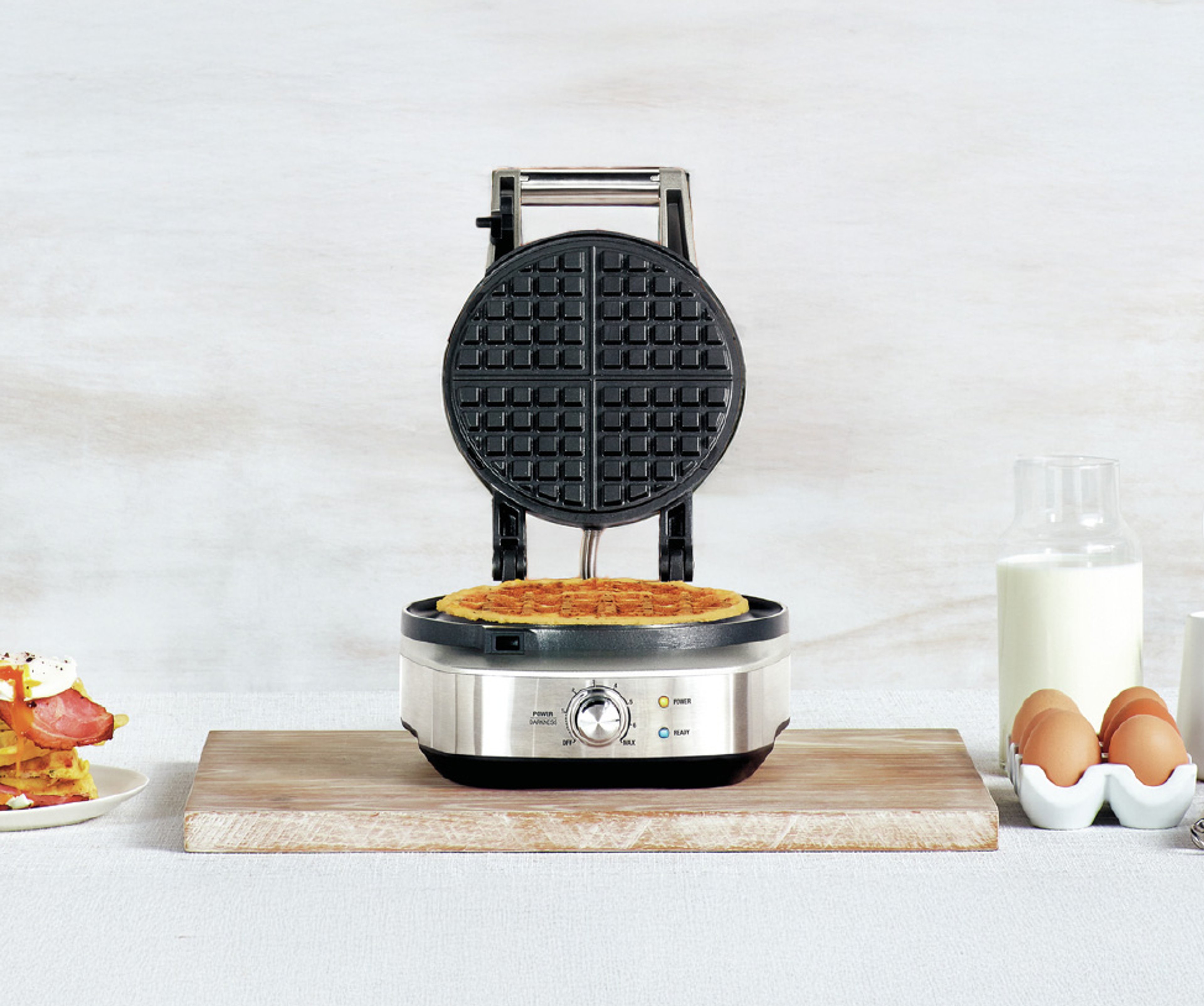 We elevated the subtle art of waffle making by directly addressing its only trouble spot: batter splatter. The circular moat catches and cooks excess batter, keeping it all in play. Browning control lets you choose from light and fluffy to crispy.