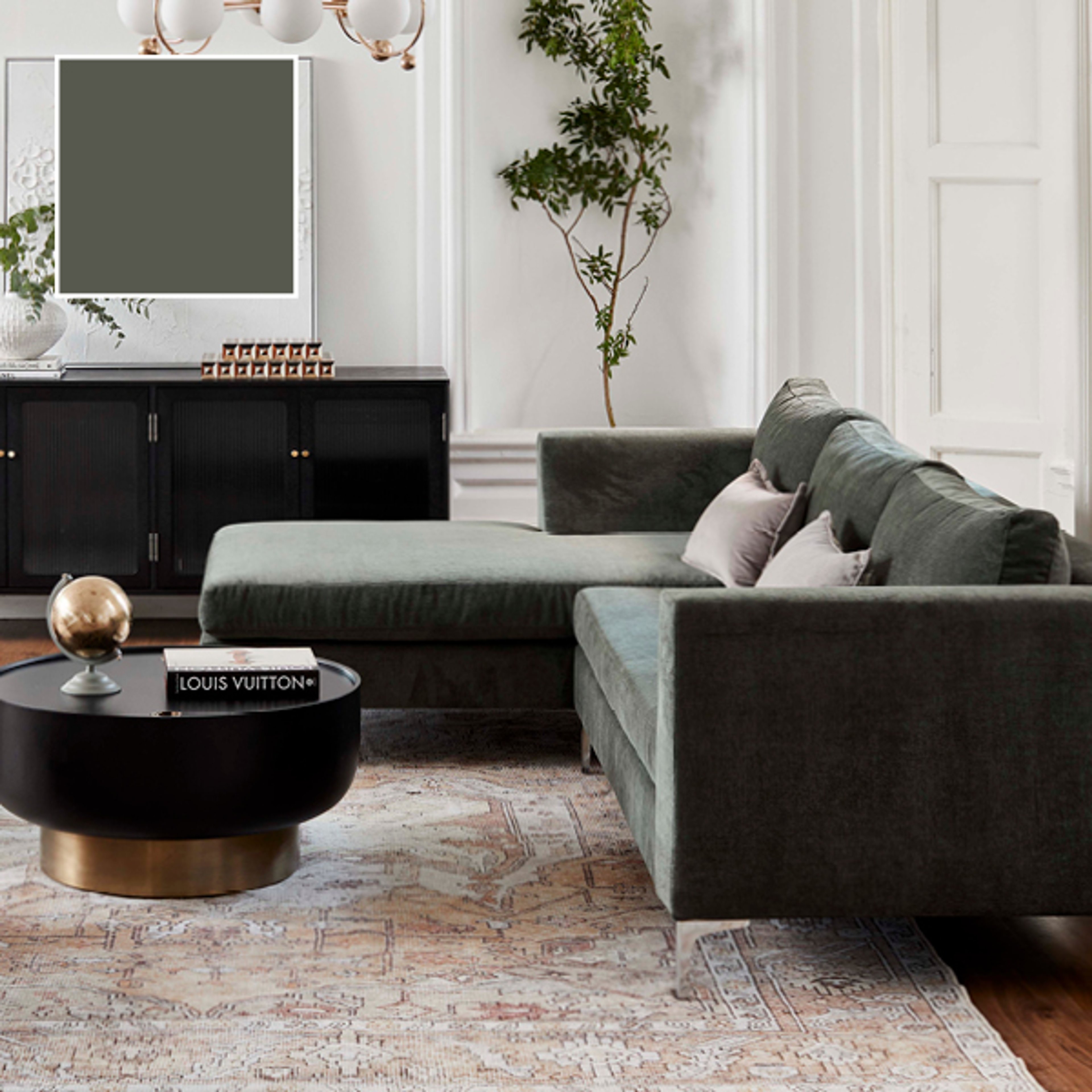 Designed for right-facing corners, it efficiently uses space and offers generous seating, enhancing room functionality and flow.