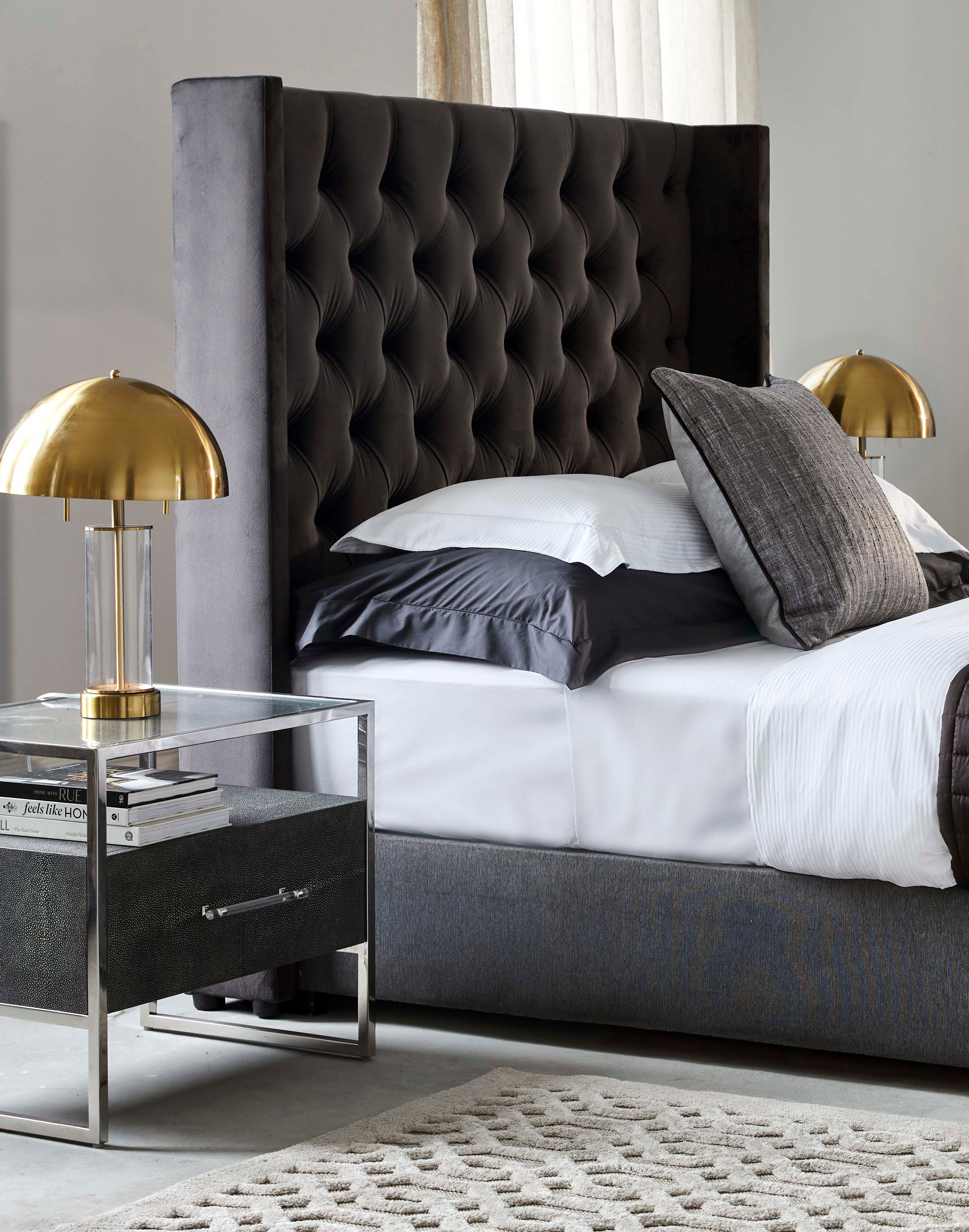 Wingback Headboard: Adds dramatic flair with its winged sides, perfect for an opulent feel.