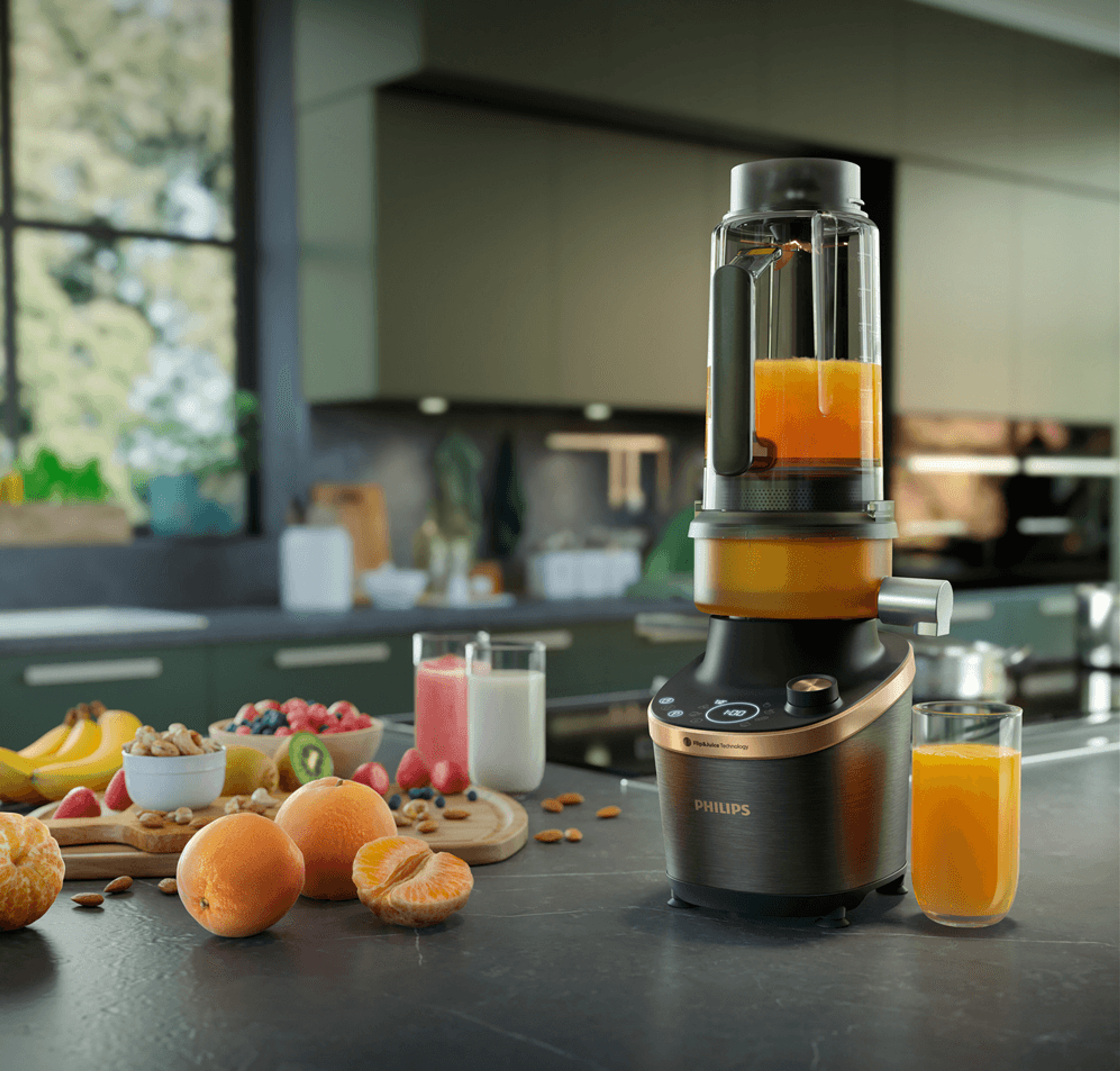 The Philips Flip & Juice⢠Blender delivers versatile textures with its innovative jar design and filter system, perfect for juices, smoothies, and nut butters
