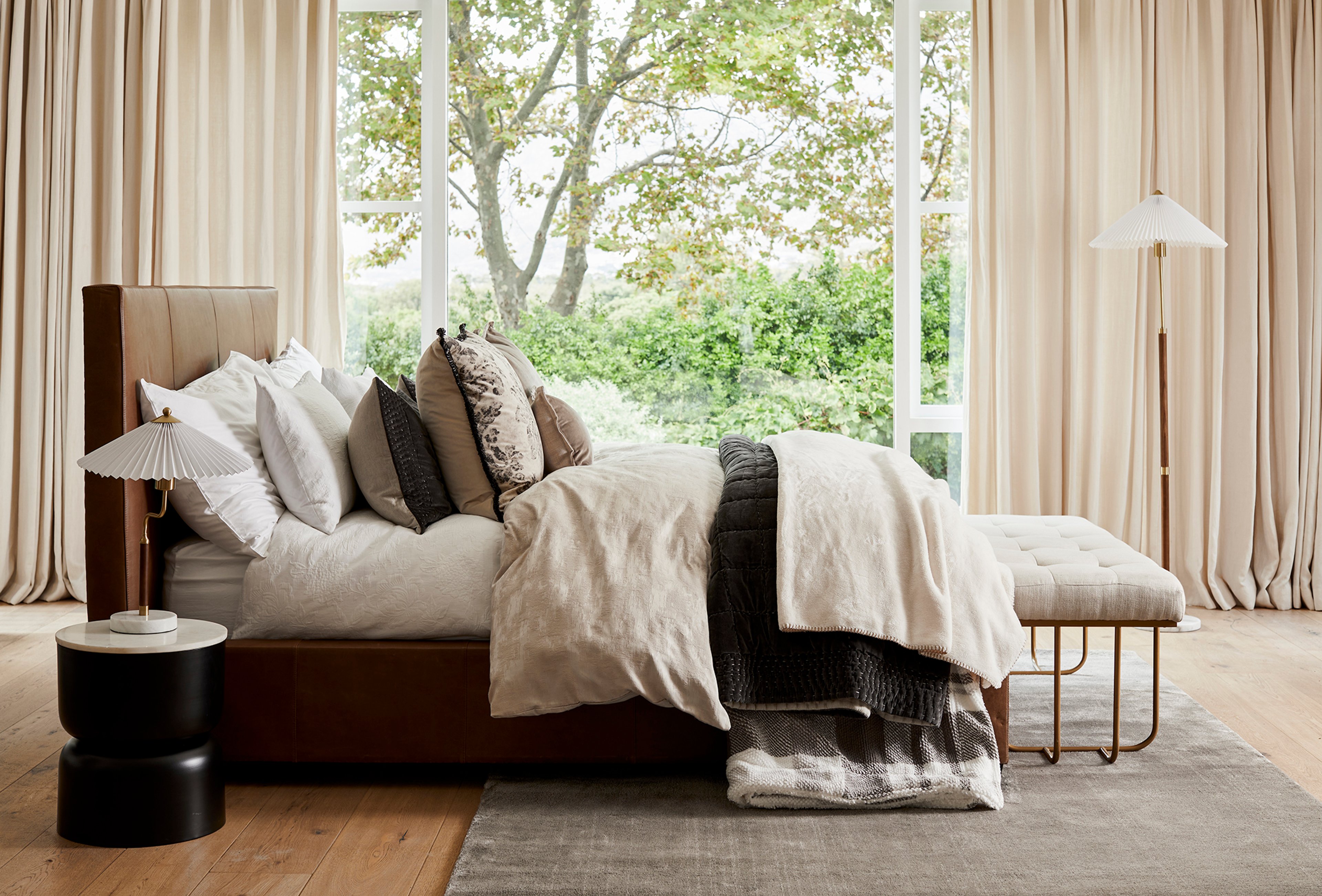 If you love the flooring in your room and don’t want to cover it up, go for two smaller carpets on either side of the bed. If you want to make a statement and warm the room, go for either a large carpet that fits almost completely under the bed starting from below the nightstands and extending roughly the width of the nightstands on either side and double at the foot of the bed. You can also go for a smaller rectangular carpet that starts roughly two-thirds under the bed and extends evenly on the sides and bottom.