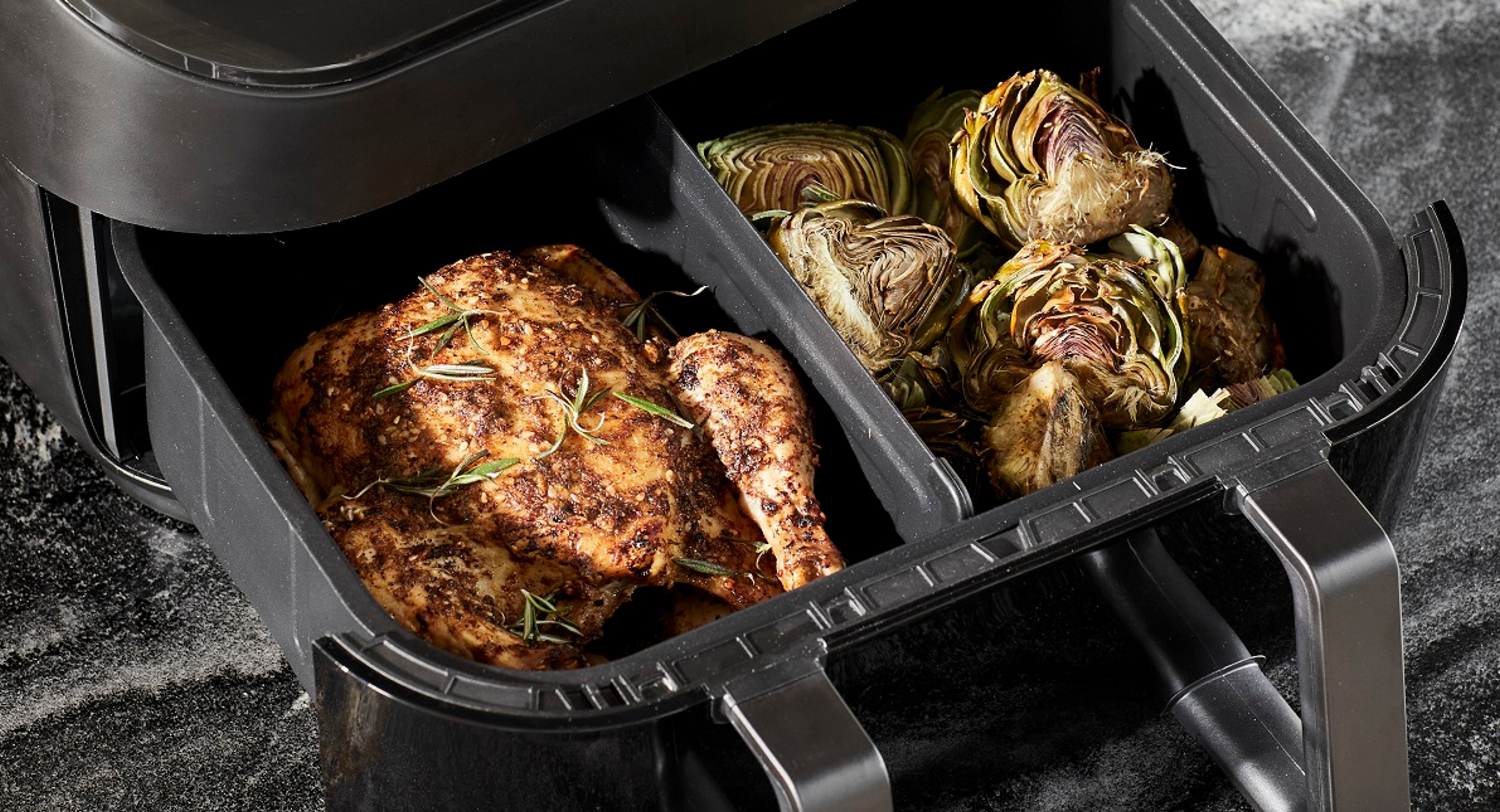 Dual Drawer: Allows you to cook two different foods at once, at separate temperatures. Perfect for families or meal prepping.
