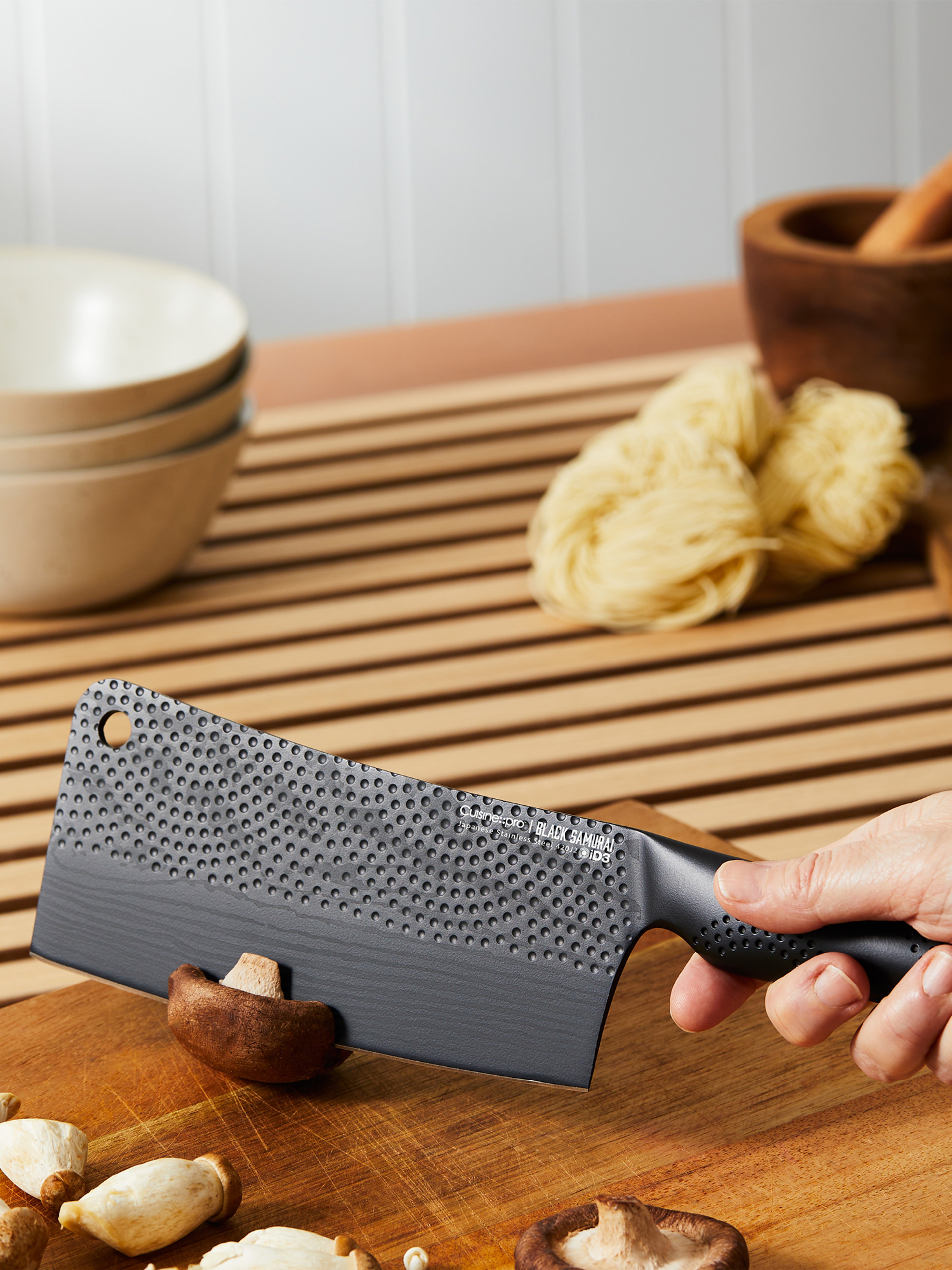 · Avoid cutting in sideways or angled motions as this will damage the blade. Run the kitchen knife up and down only.