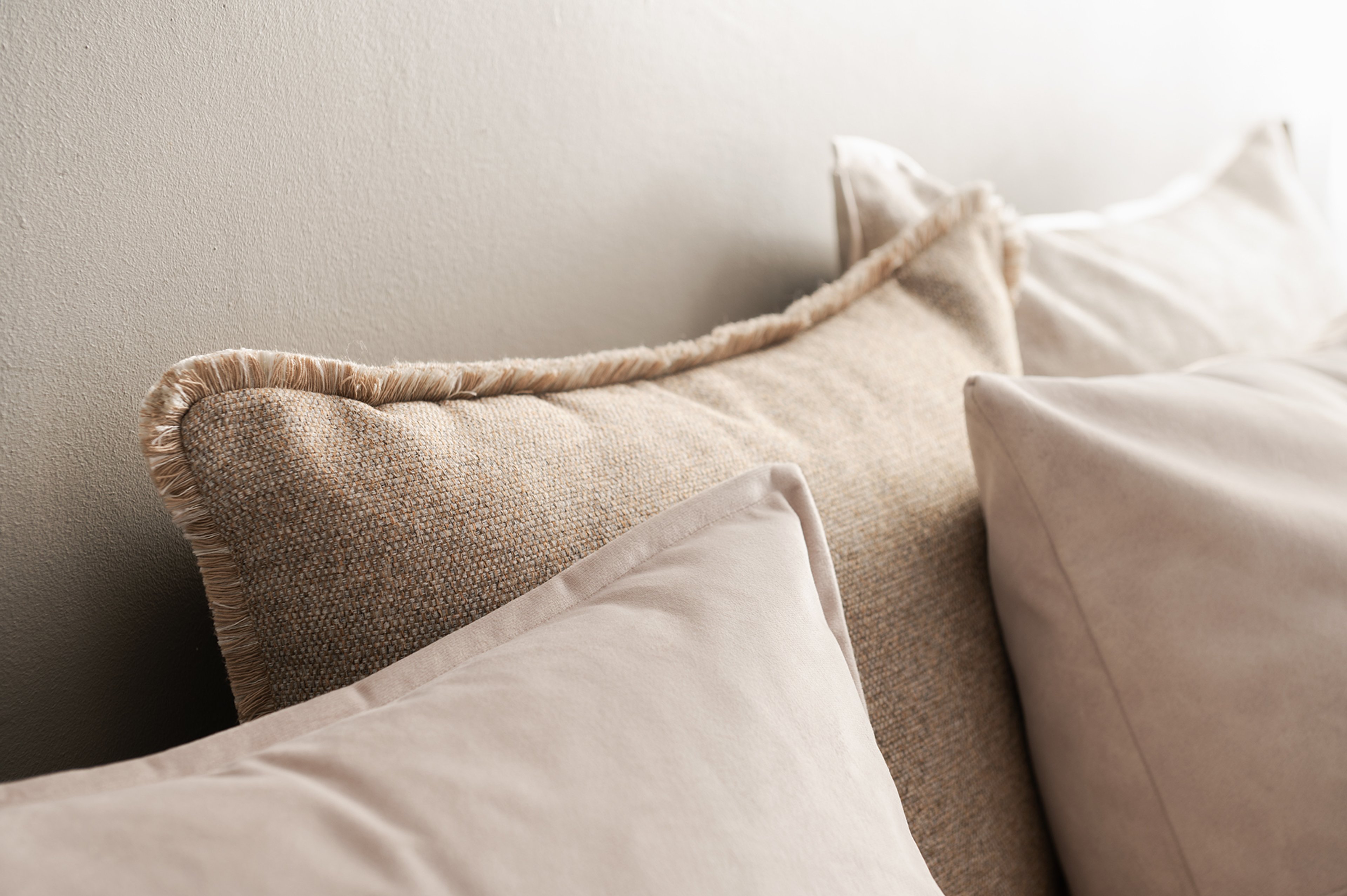 - Use soft, neutral coloured cushions in soothing hues like beige, grey, and white.