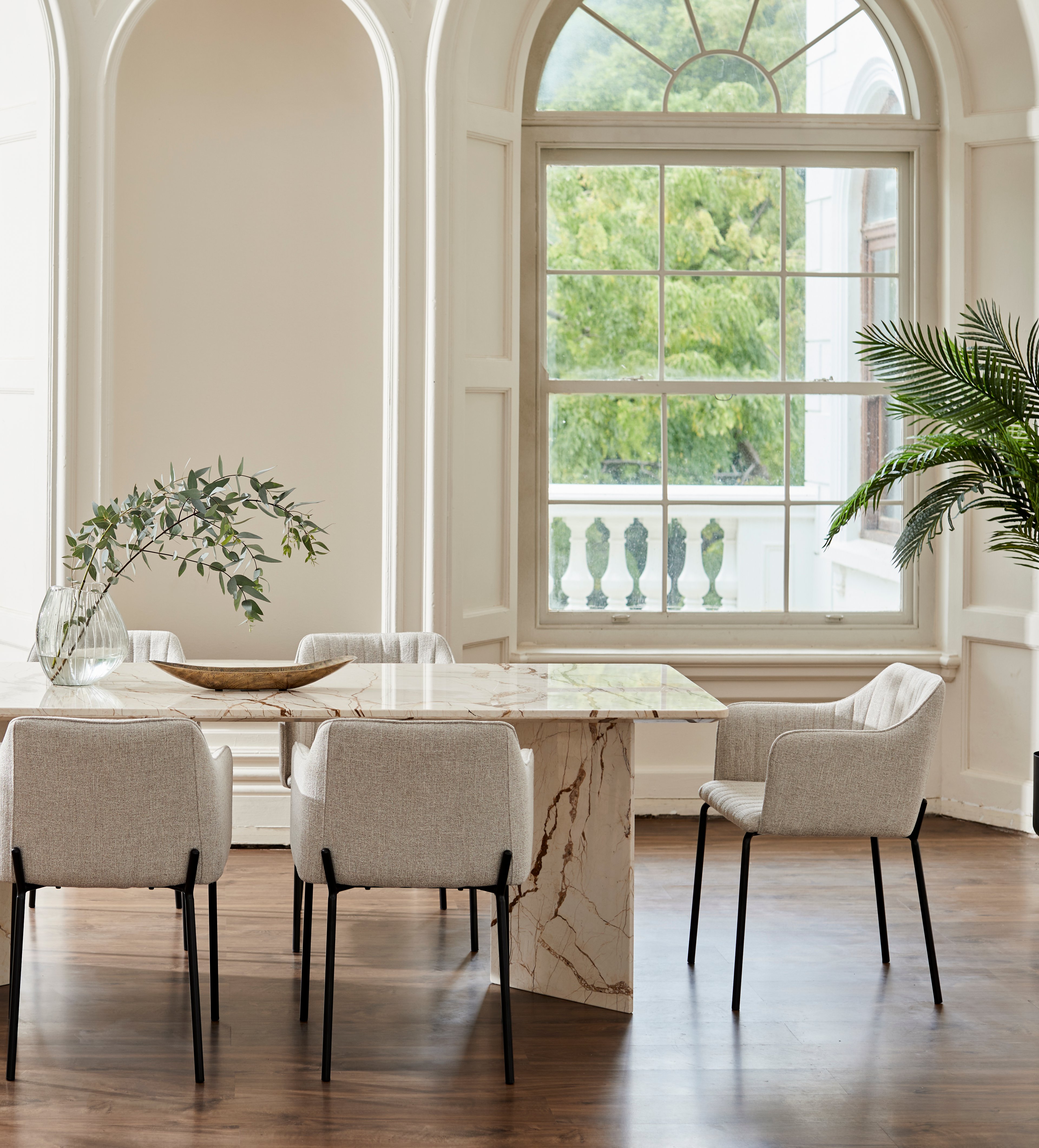 Styling tip: Choose one key piece as the focal point for your lounge or living space. A 3-seater leather sofa can be styled with single velvet seaters to bring in a mix of textures, fabrics and styles.