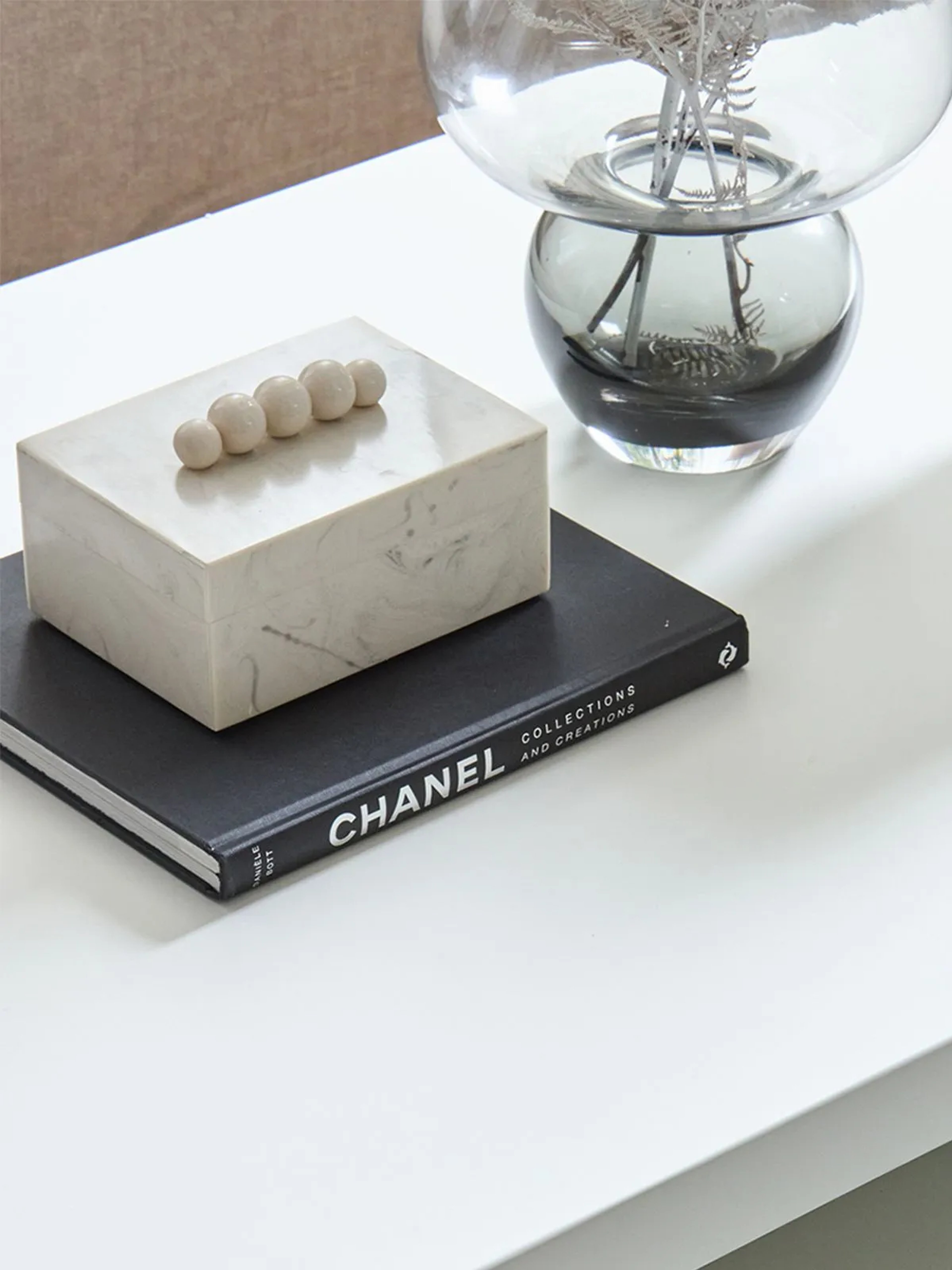 This lidded box is ideal for keeping keys, remotes or other small items, while the sculptural lid detail adds interest to your space.