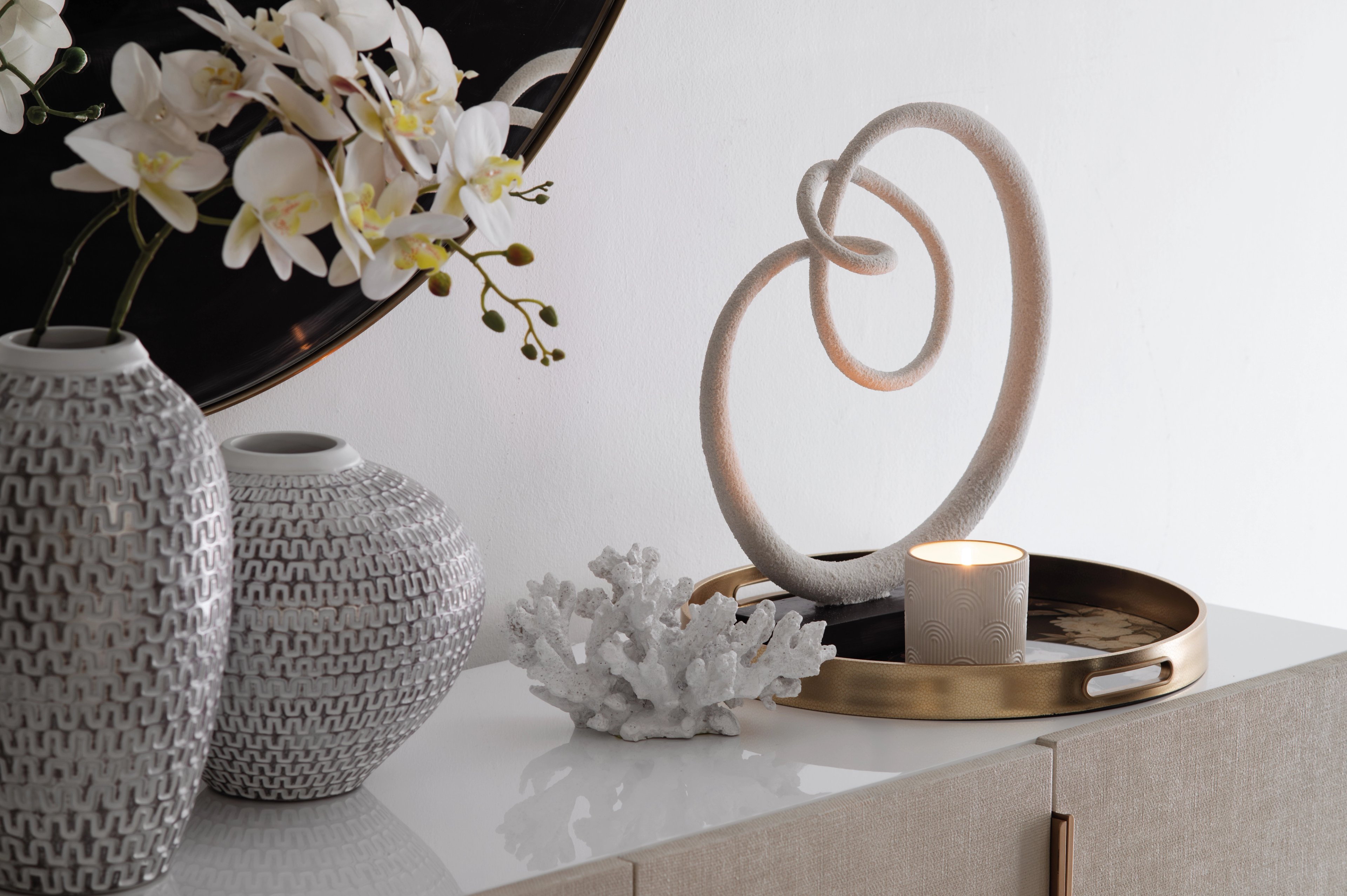 A stylish decorative piece that brings a feminine feel to your space. Use it as a display surface for items like candles or small sculptures, placed on a coffee table, pedestal or sideboard.