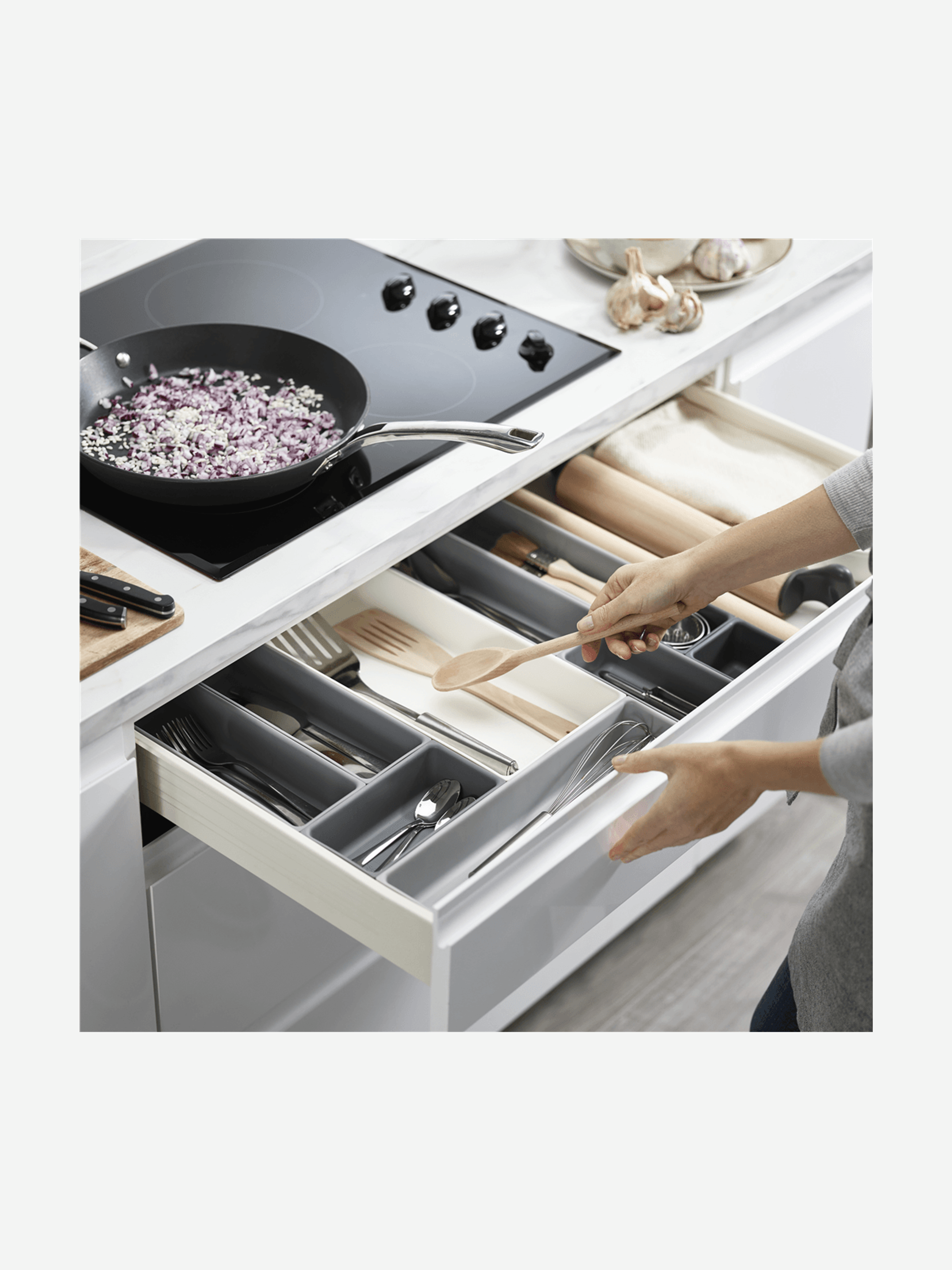 Turn a space of chaos into a quiet win. Every home has a drawer where things go to hide: batteries, pens, takeaway menus, rogue measuring spoons, life’s little leftovers.