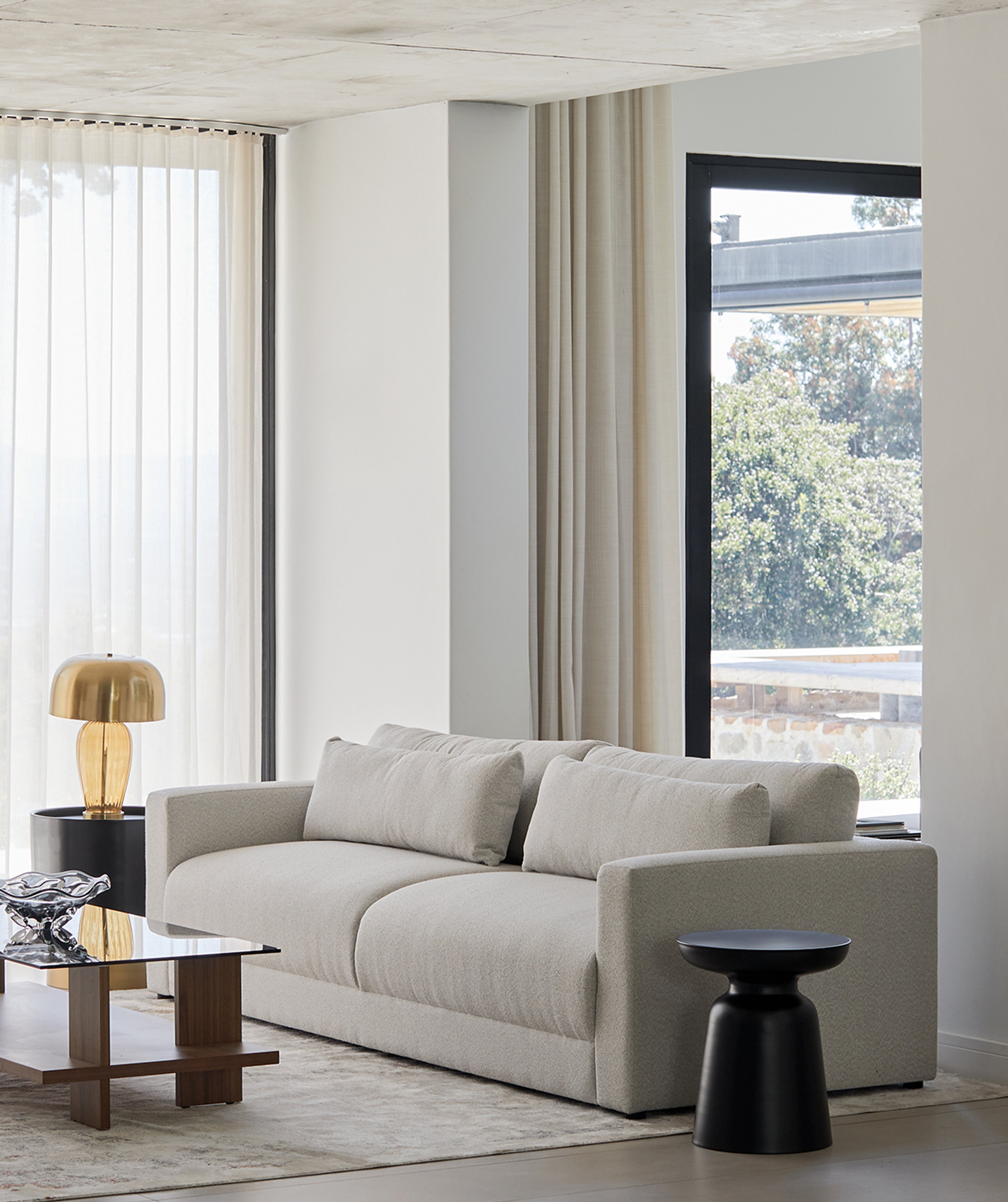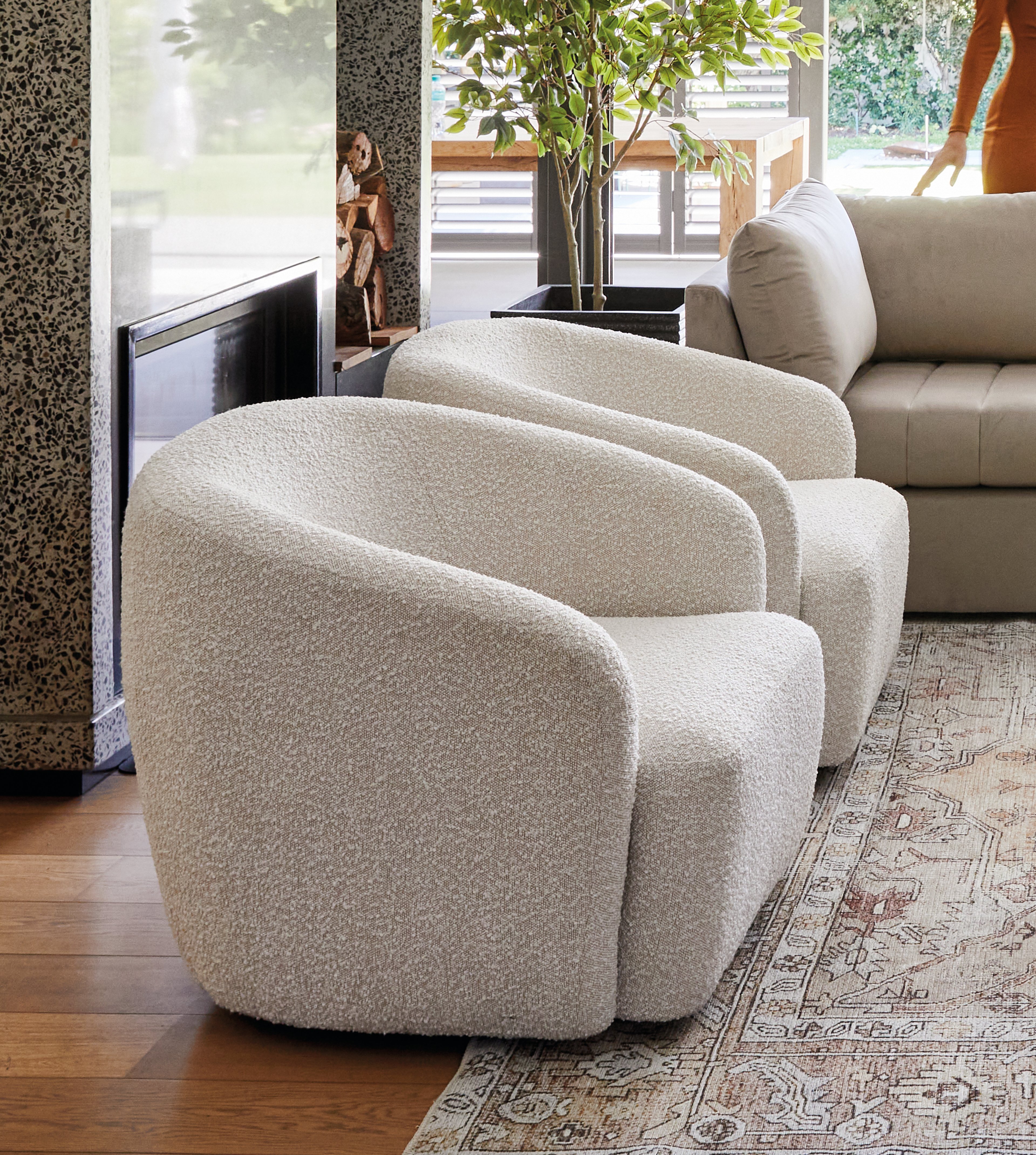 A curved couch, enveloping armchair, or richly toned ottoman can ground your space and anchor your winter styling. Add scatter cushions in tonal shades of blue, charcoal, or ivory for a layered, elevated look that still feels relaxed.