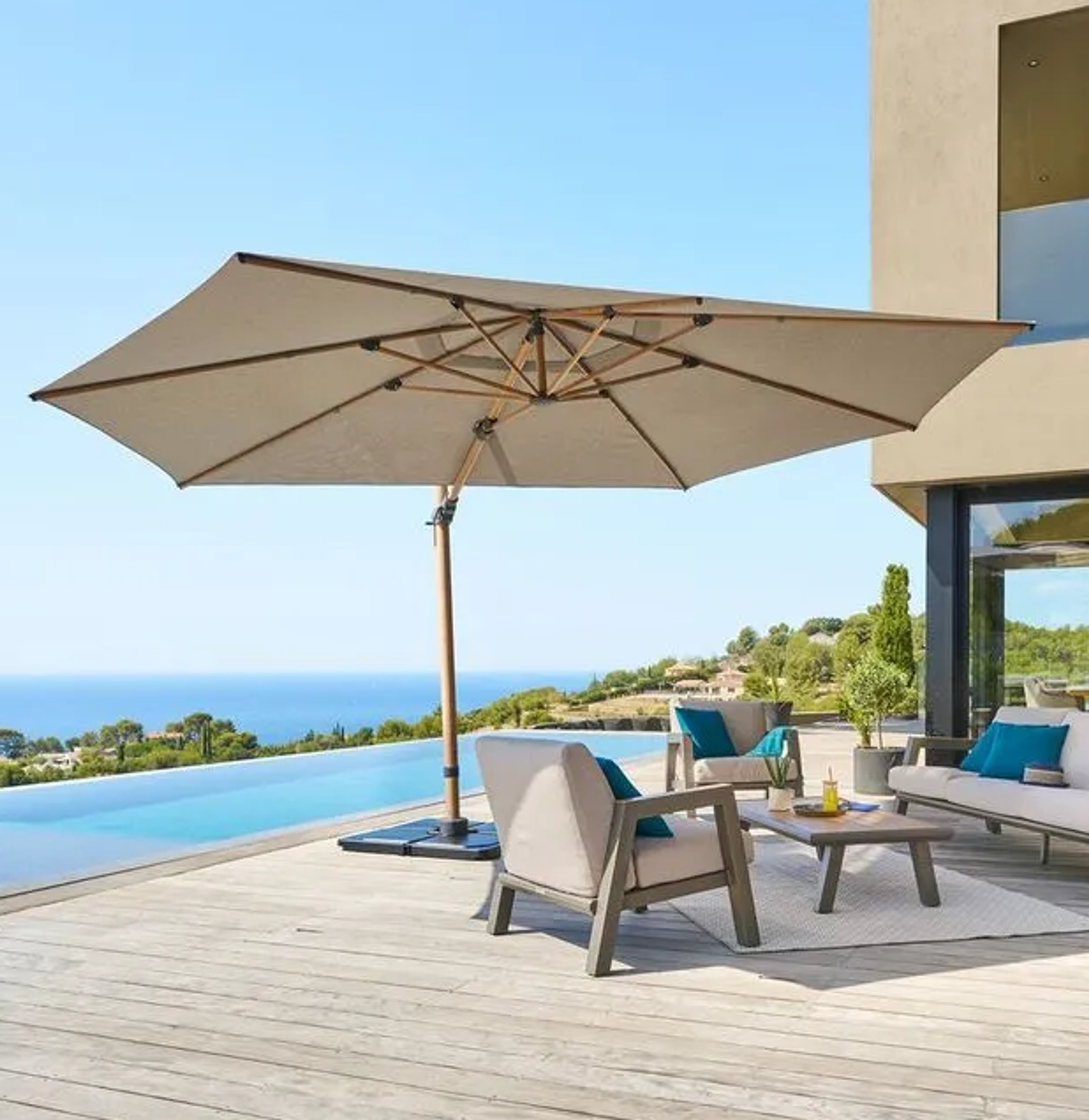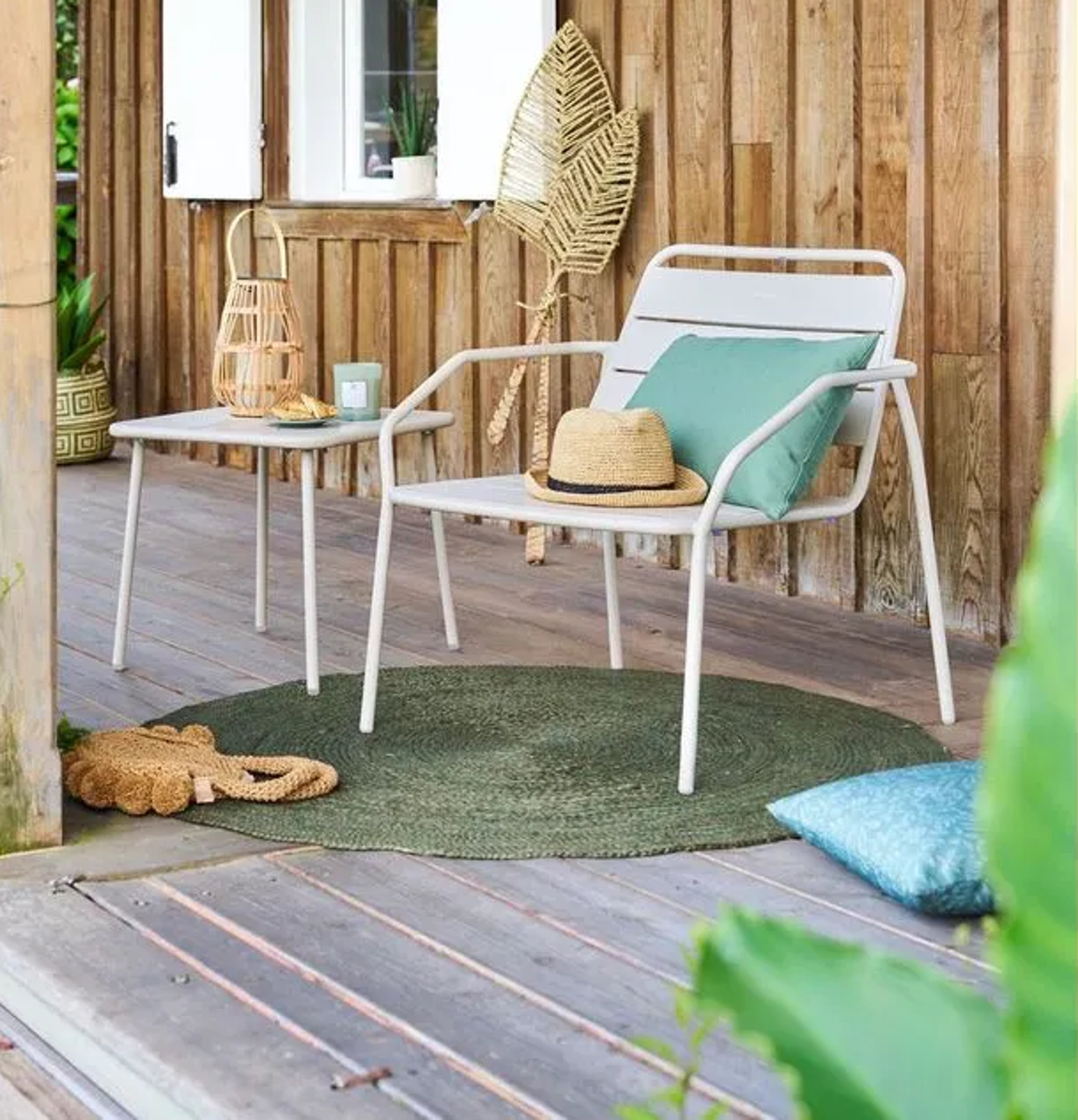 Create softness with patio-friendly décor like scatters and carpets.