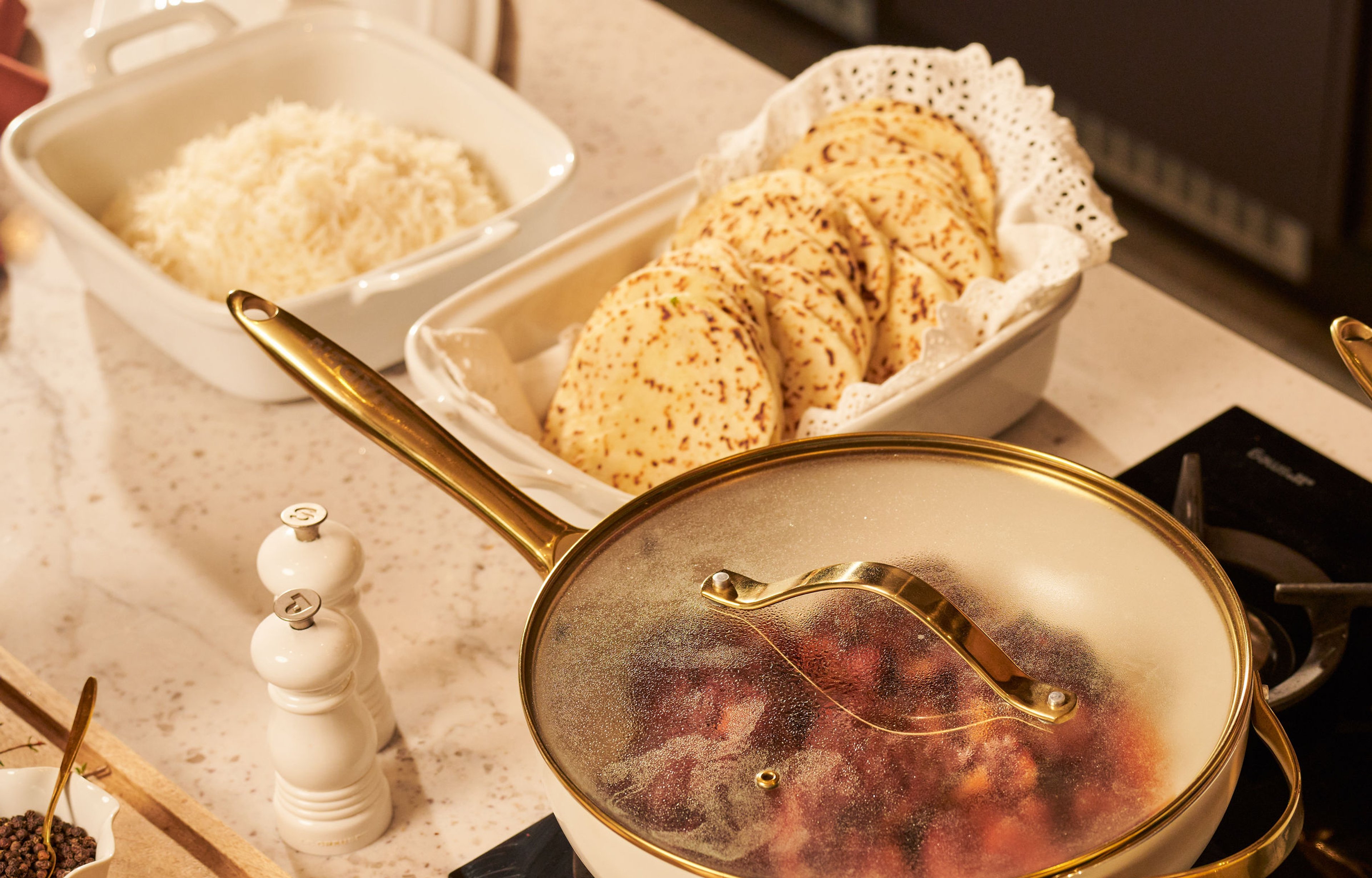 12. Place the naan into the hot, dry pan and immediately cover with a lid. Cook for 3–5 minutes.
