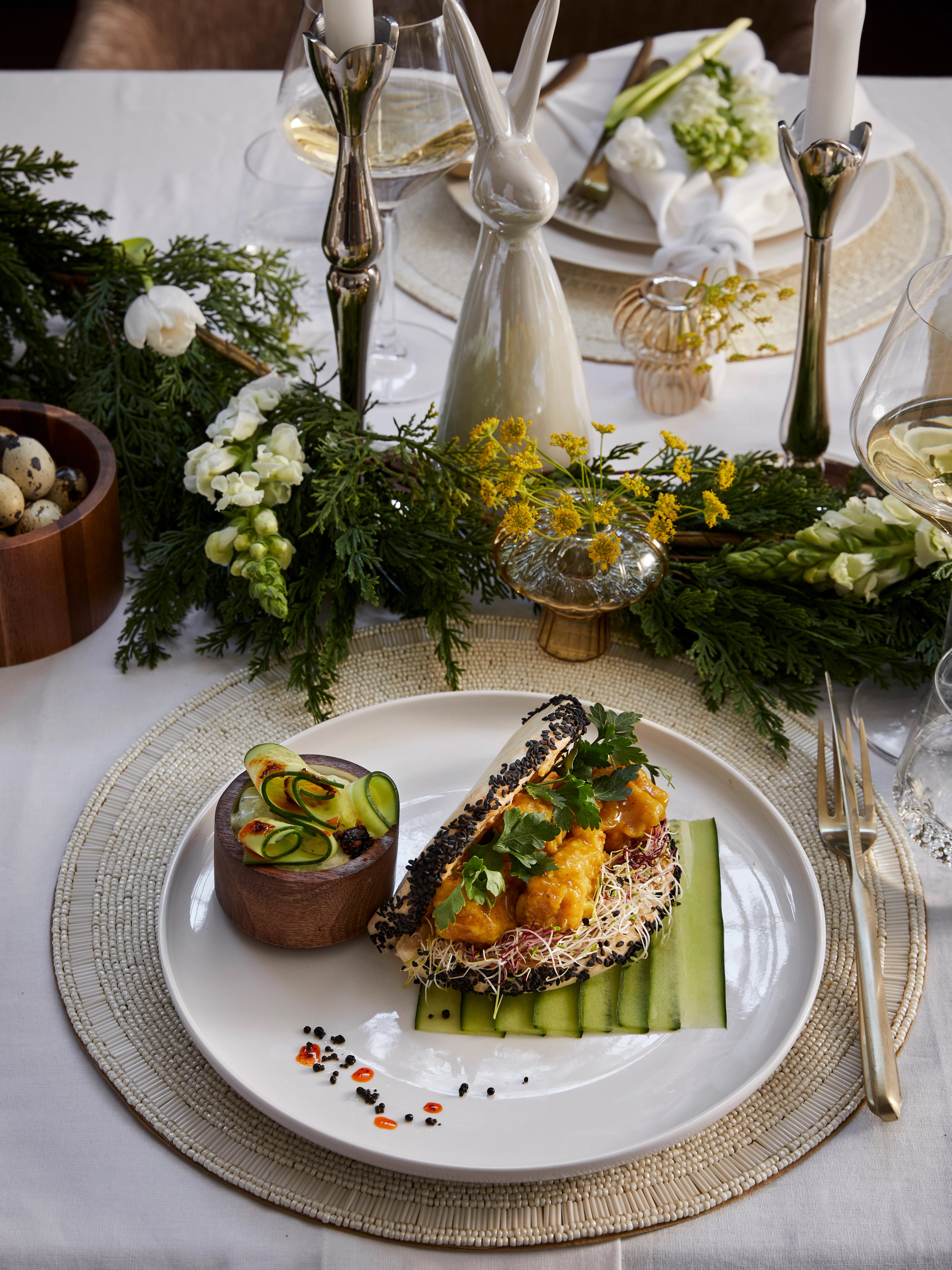 Add sesame and/or nigella seeds, depending on the dish the naan is accompanying. Add after the basting – roughly ½ tsp per naan.