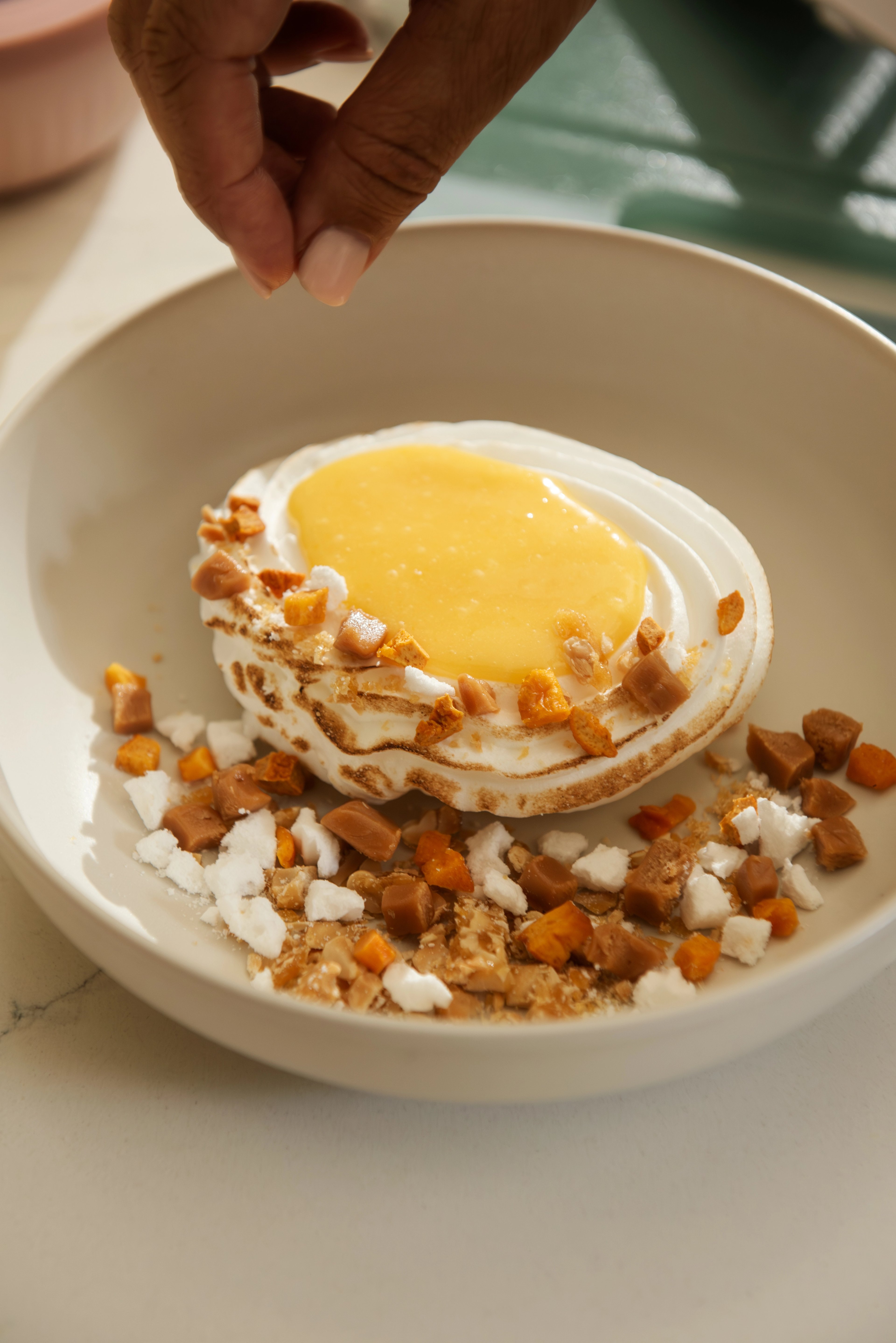 Italian Meringue Nest with Lemon Curd and Fruit Crumble
