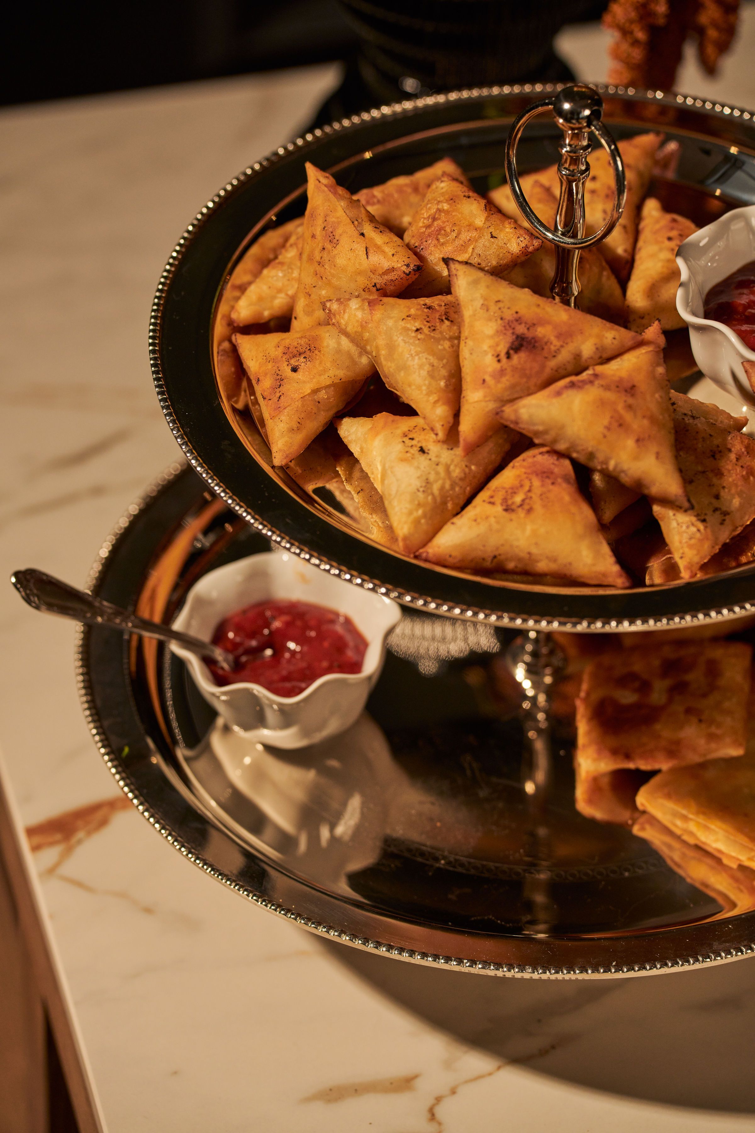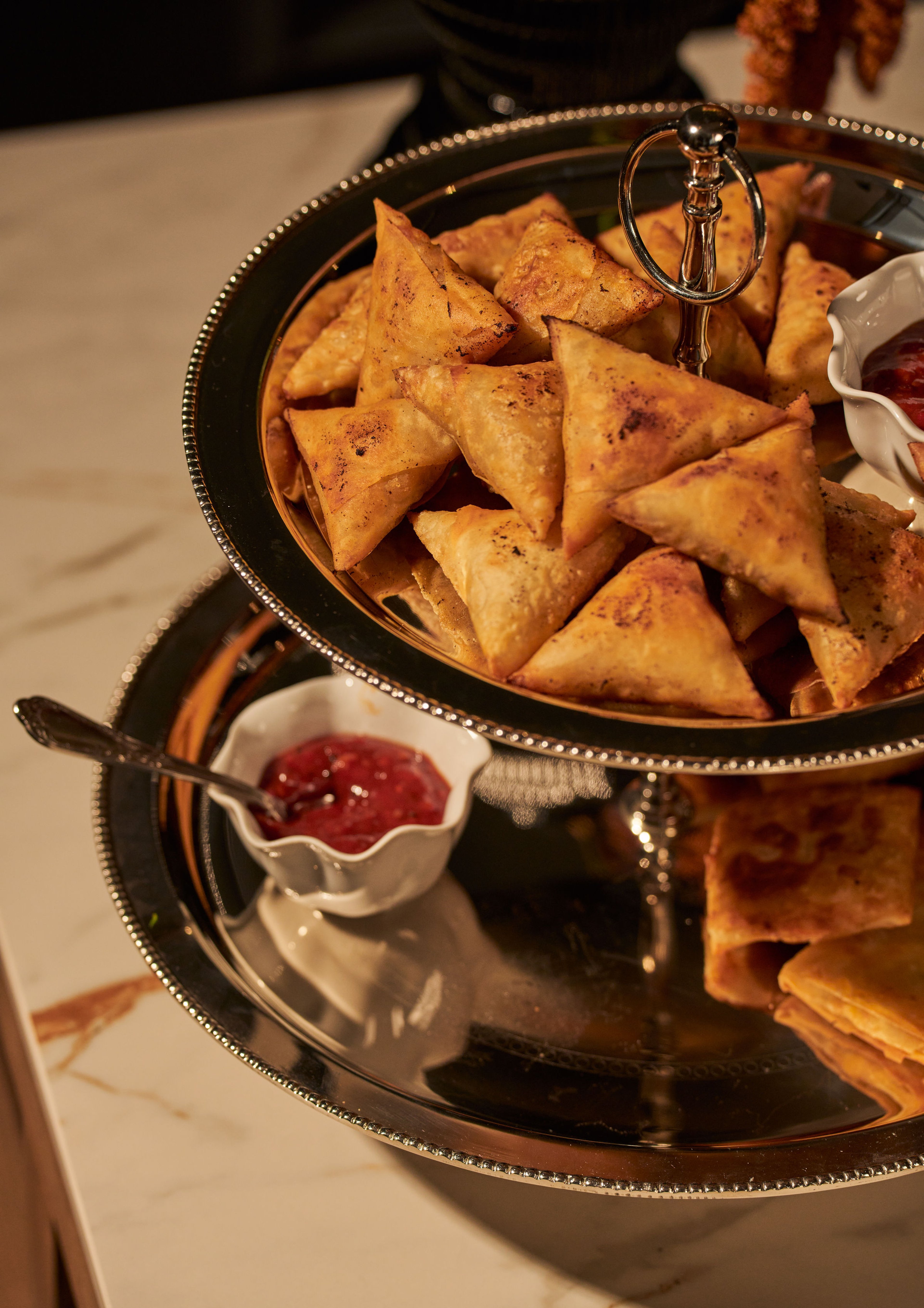 10 Place a tablespoon of filling on the end of each samoosa strip and fold into triangular pockets.11 Heat sunflower oil in a pot and deep-fry the mutton samoosas in batches until golden.12 Remove from the oil with a slotted spoon and drain on paper towel.13 Serve hot.