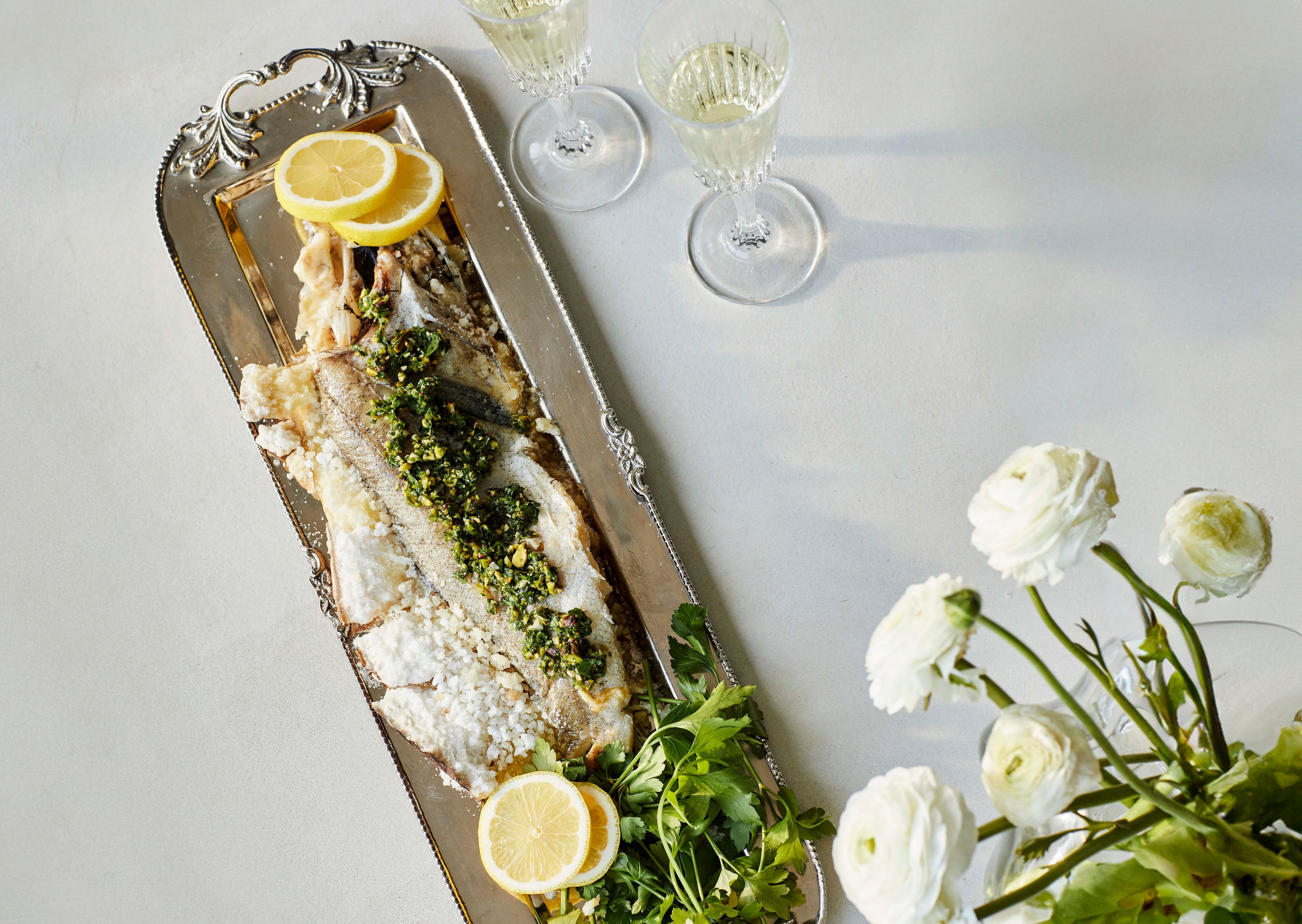 Bake for 25 minutes on 200 degrees. The crust should have formed a hard shell that you will break to remove the fish.