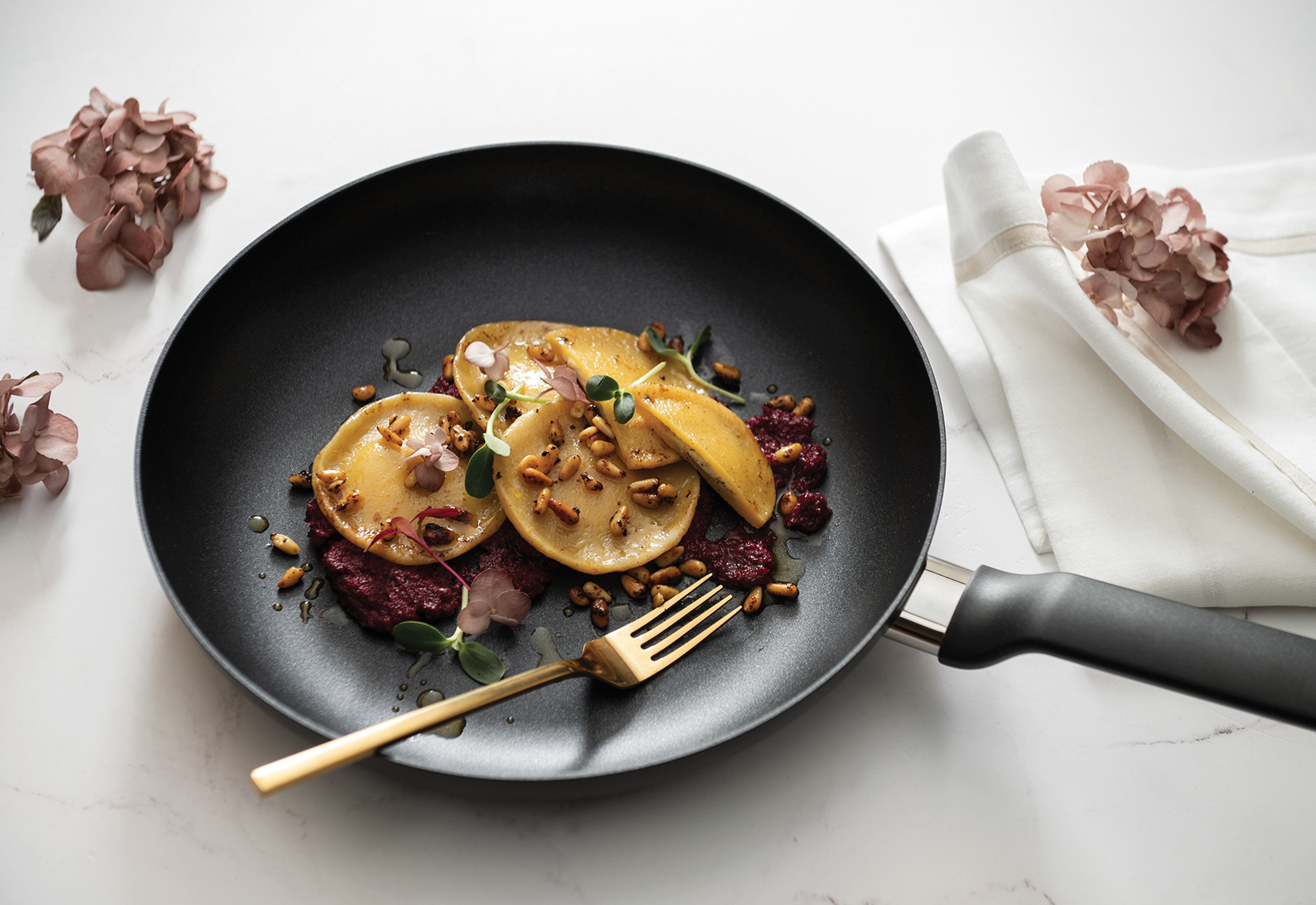 Cut pears lengthwise in half and remove cores and stems; cut halves lengthwise into slices.