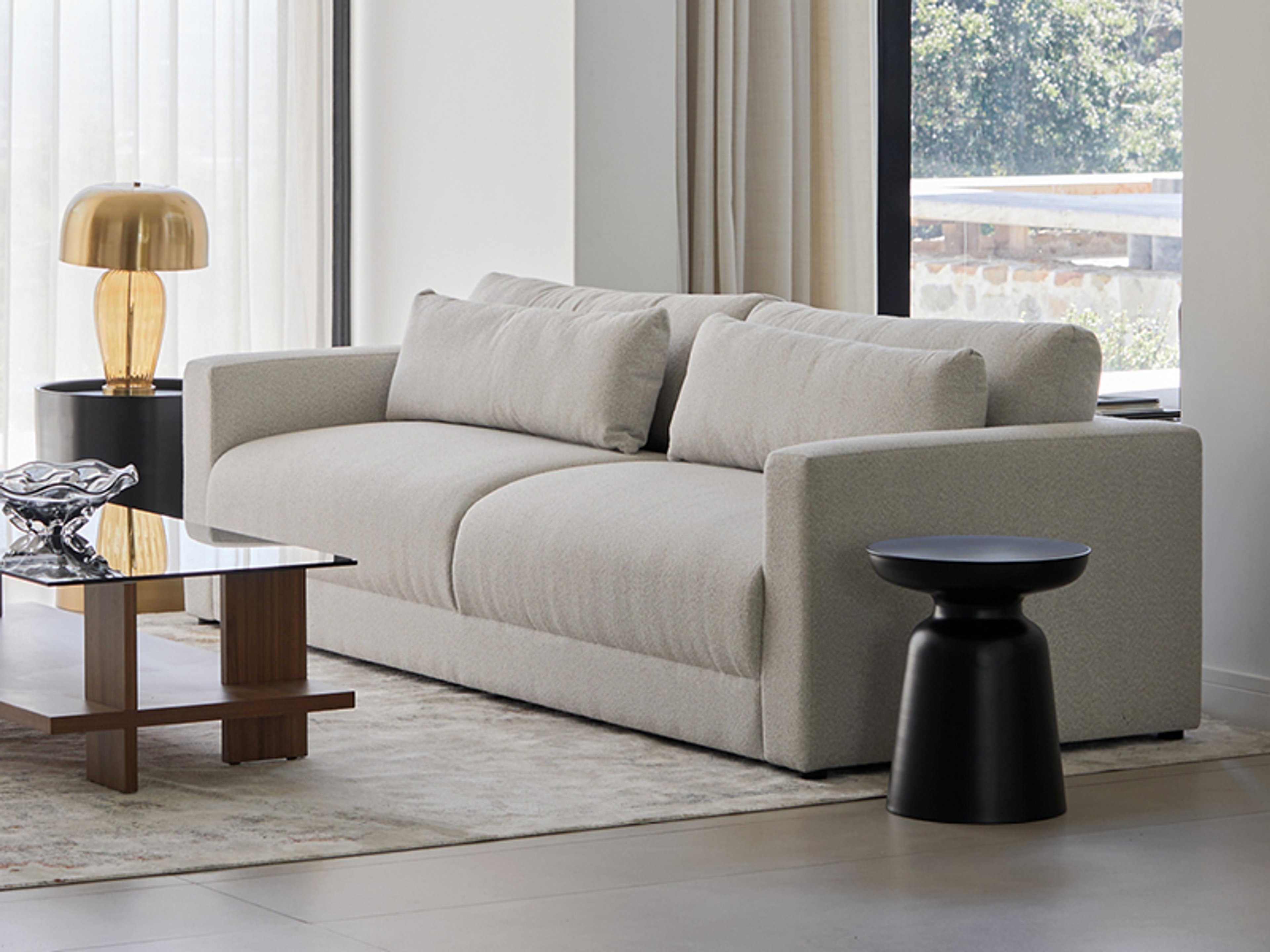 The Huxley Couch has a modern, low-profile design with generous proportions. Soft yet structured cushions offer comfortable support, while the deep seat invites you to relax in exceptional curl-up comfort. Huxley is available in a wide range of colours in LuxGuard fabric or full-grain leather to suit your style.