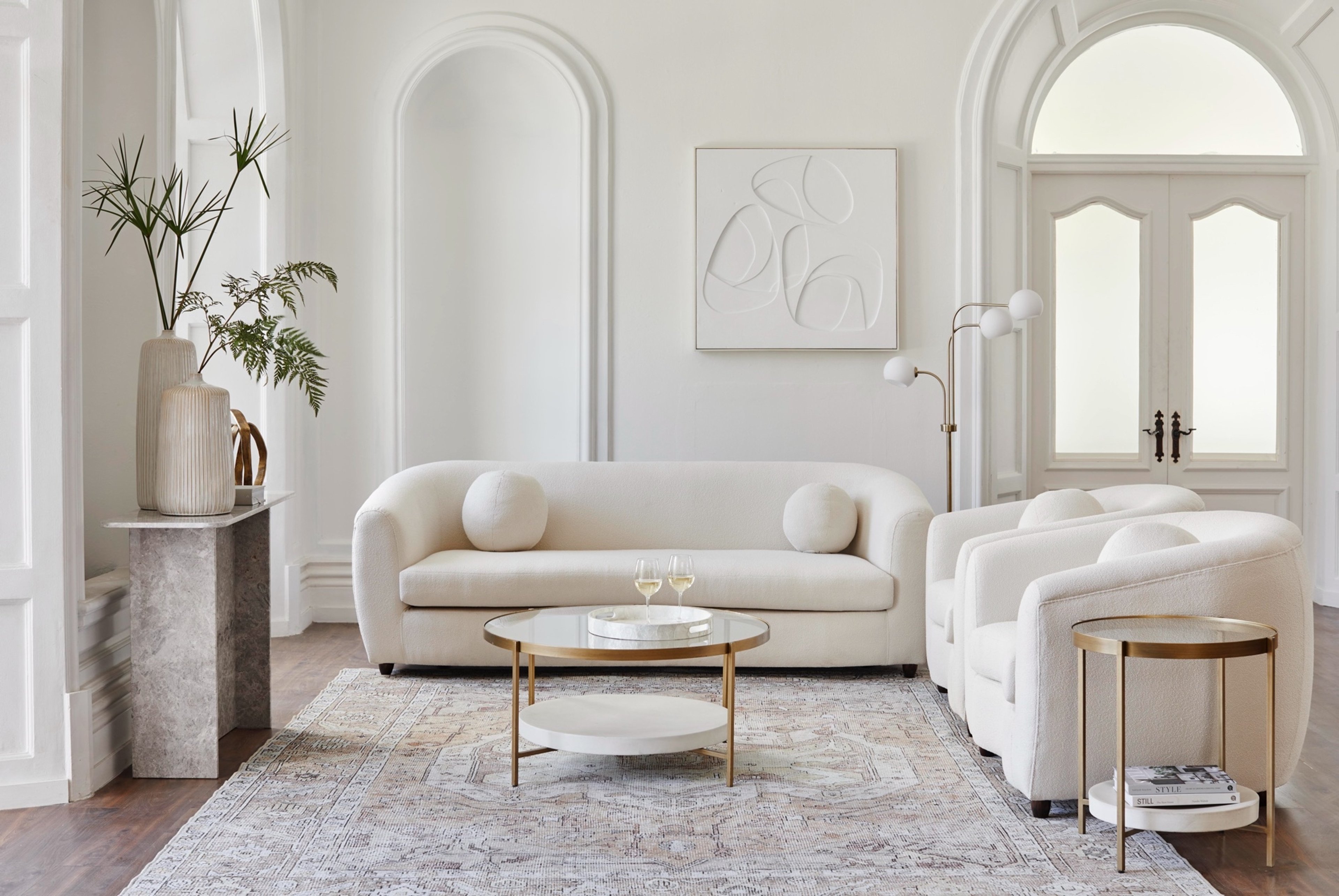 The Ellis couch brings timeless elegance and luxurious comfort to your living room. Each couch features fully upholstered seating, a beautiful soft curve and bold proportions. Additional round scatters complete the indulgent feel of this collection, each chair or couch a statement in style.