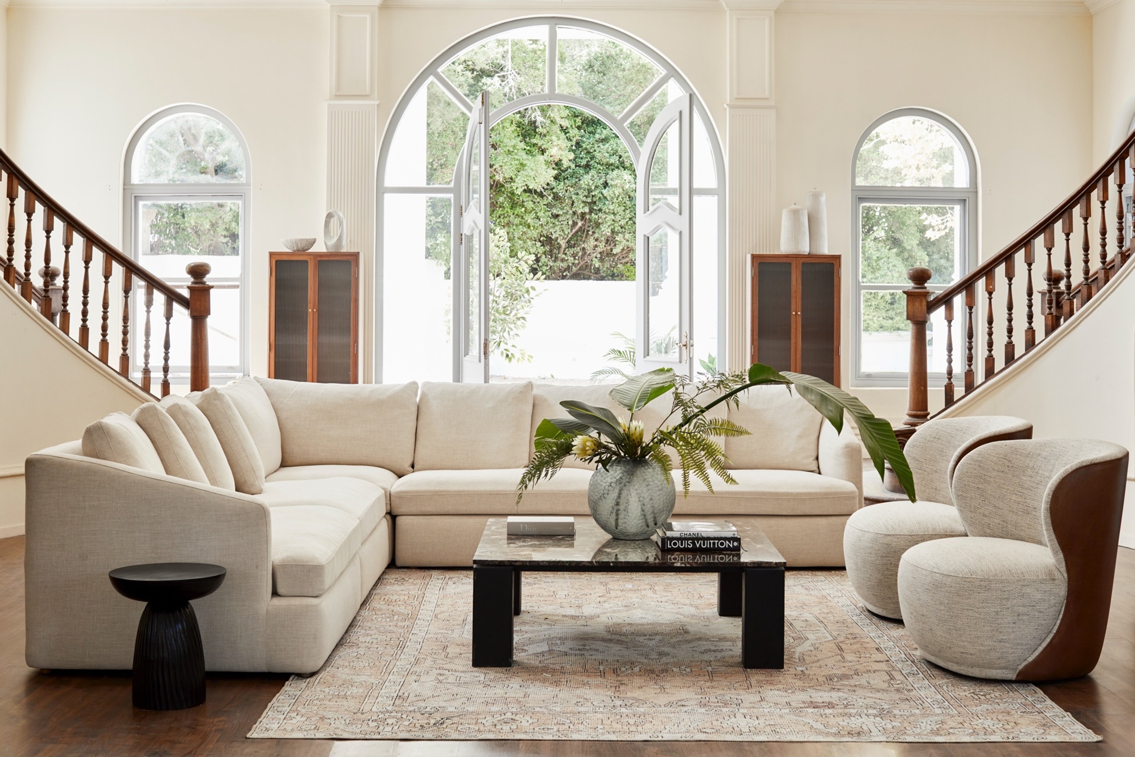 The Palmer 5 Pc Modular Couch combines modern versatility with luxurious comfort with a high back for superior support and plush seat cushions for ultimate relaxation. Sloped, thin armrests add a contemporary touch. Designed with a fully modular structure, it allows you to customise your layout to suit any space.