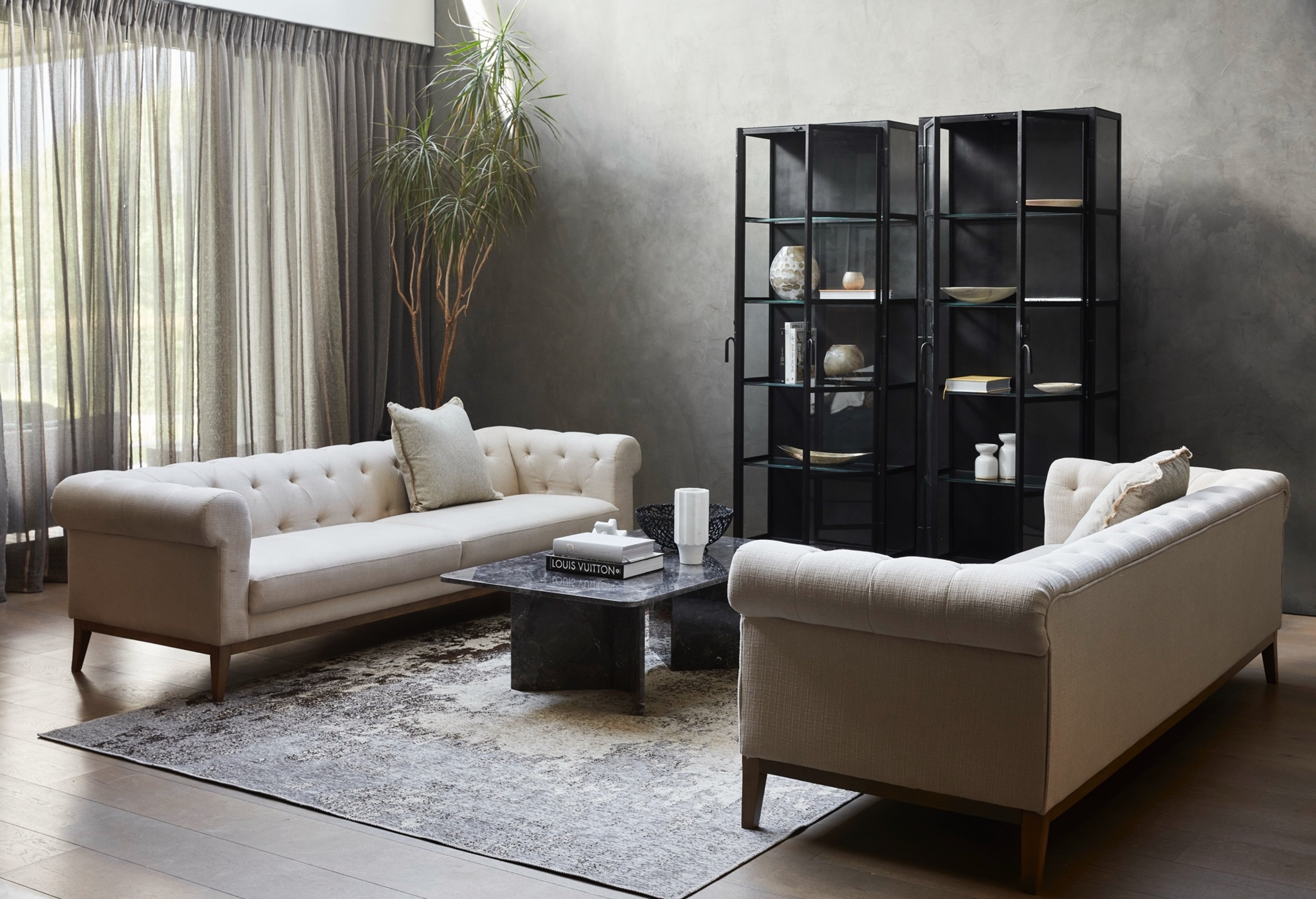 The Soho sofa combines a cassic tufted style with a modern chesterfield design, making it a timeless addition to your living room. Hand-sewn tufted detail paired with a low-profile wood base finished with walnut stain for added warmth makes Soho an inviting feature in your space.